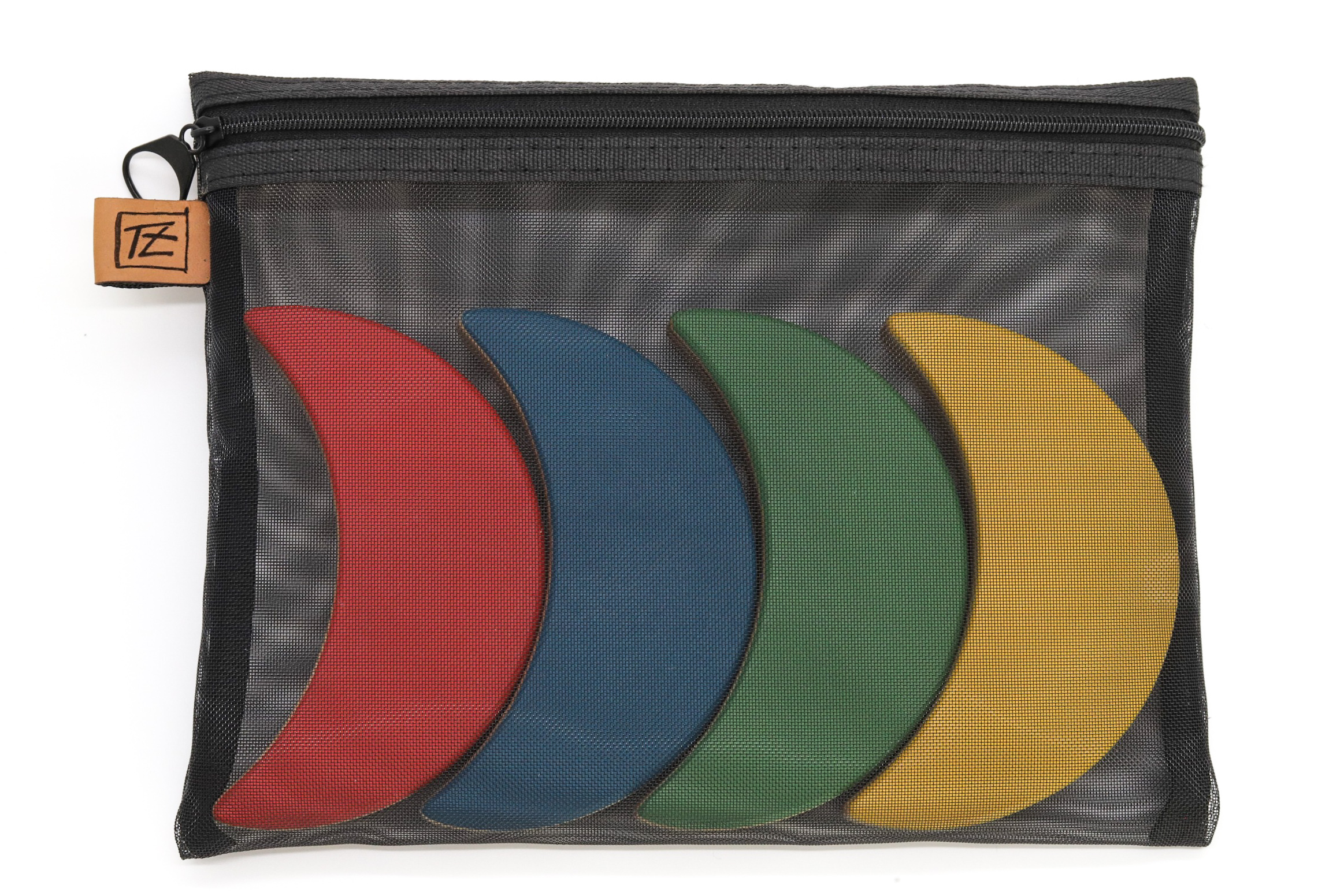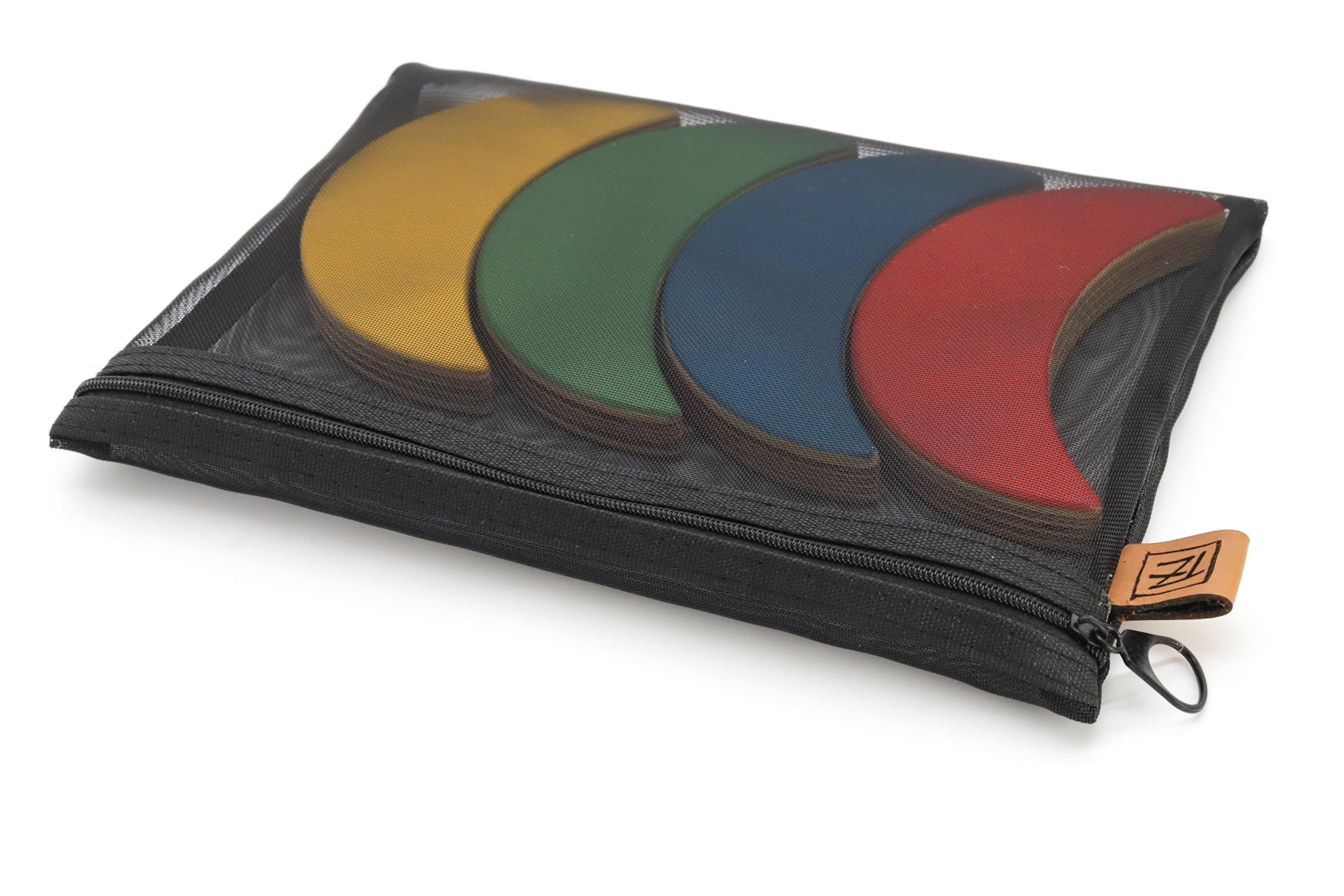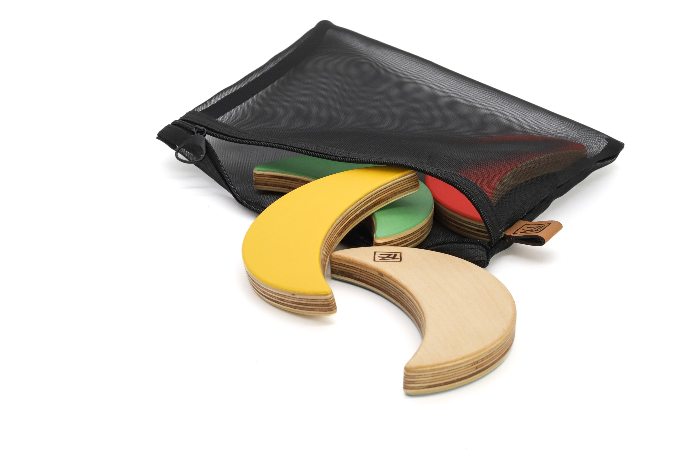 Deze set bevat vier vrolijke kleuren, blauw, rood, geel en groen. Ze zijn gemaakt van hoogwaardige kwaliteit berken multiplex. Inclusief handige opberg etui.